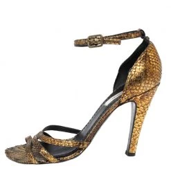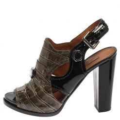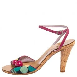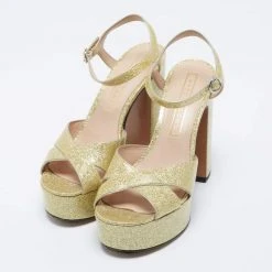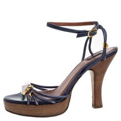 Marc Jacobs Green Leather Buckle Detail Ankle Strap Wooden Platform Sandals Size 36 For Women