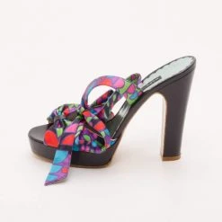 Marc Jacobs Graphite Satin Ruffle And Rose Detail Round Toe Slingback Sandals Size 36.5 For Women